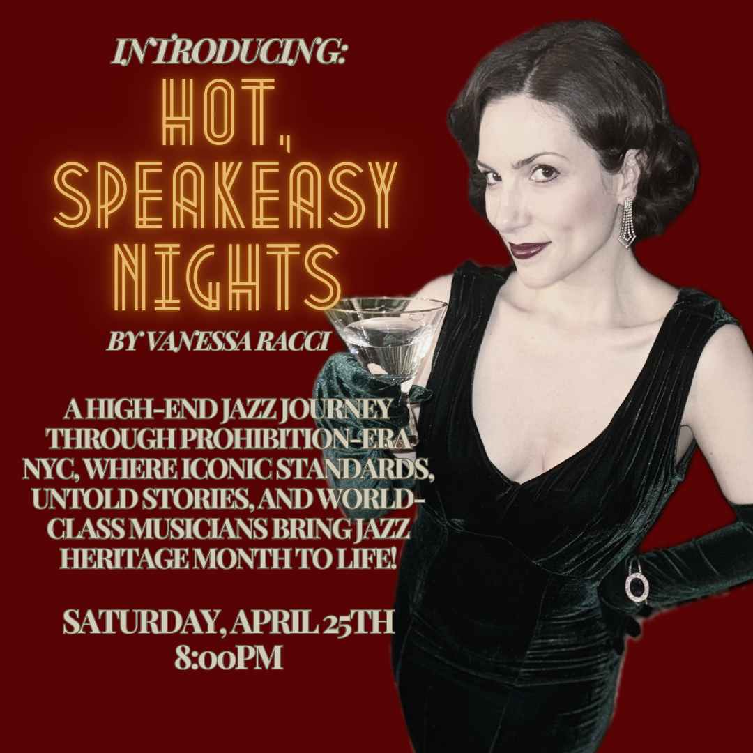 Join us for "Hot Speakeasy Nights," a classy jazz tribute to Prohibition-era New York featuring touring vocalist Vanessa Racci. In celebration of Jazz Heritage Month, the show presents beloved classic standards, intriguing, rare stories from the era, and top musicians who together evoke the smoky charm of the 1920s.